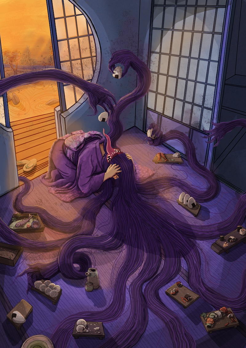 My series of Japanese female monsters continues at Part-time Monster this week, with the origins of Futakuchi Onna, or the Two-Mouthed Woman. If you have any sort of food anxieties or fears, you may be able to relate to this yokai doomed to have a perpetually-hungry mouth on the back of her skull. Have a read, and tell me what you think!
